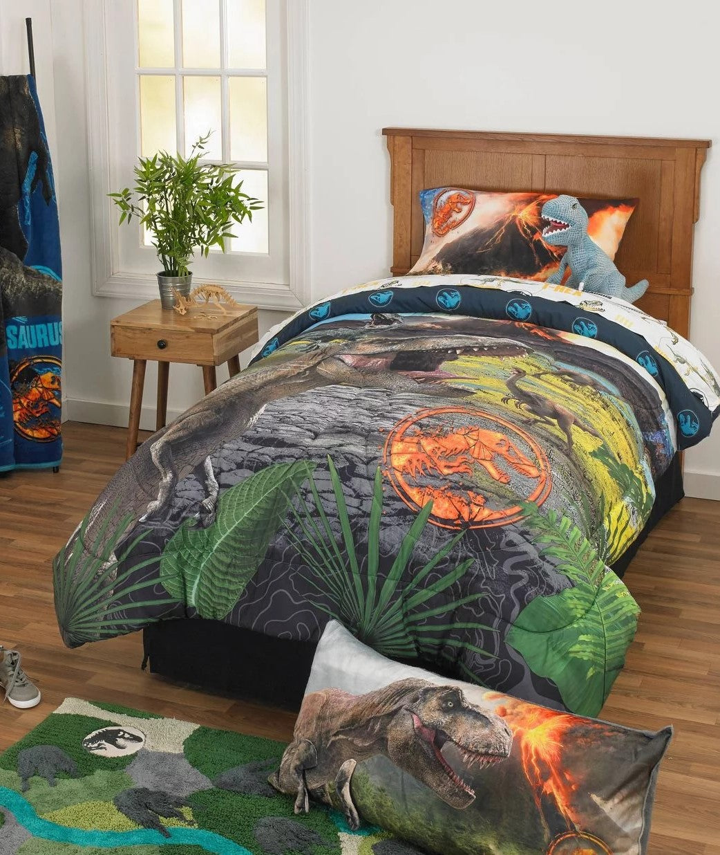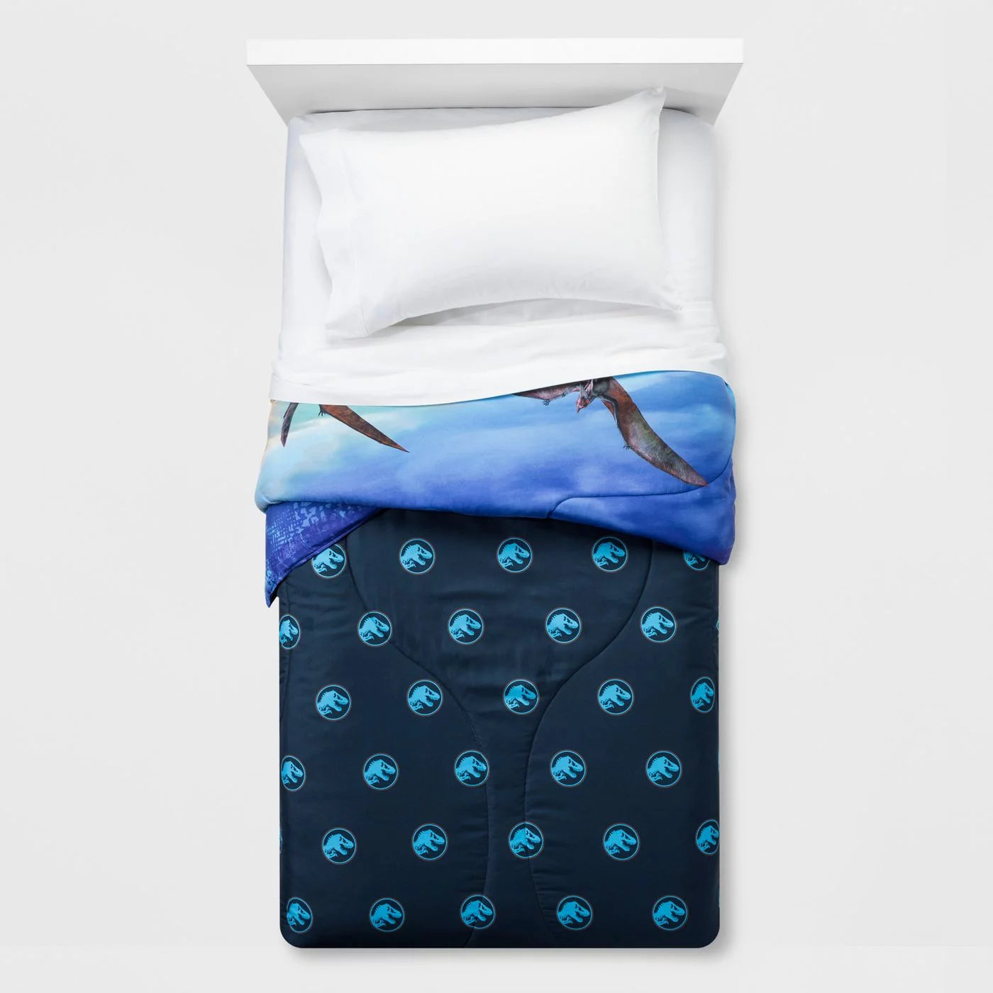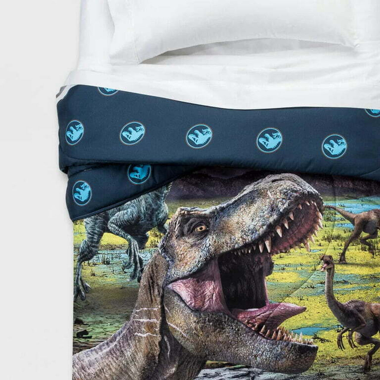 Tu pequeño dinosaurio se irá a la cama y soñará con su próxima aventura con este edredón reversible Jurassic World Twin. El edredón presenta varios dinosaurios sueltos y listos para causar estragos. El diseño reversible le permite a su hijo cambiar el aspecto de su habitación y cama según lo desee.