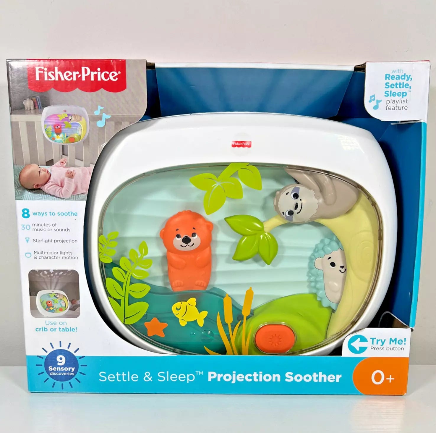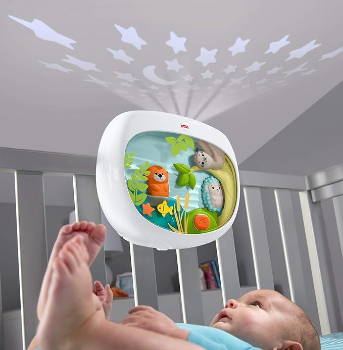 Deleita los sentidos de tu bebé y ayúdelo a conformarse con dulces sueños con el chupete de proyección Fisher-Price Settle & Sleep. Con 30 minutos de música relajante y sonidos naturales, encantadora proyección de luz superior y una ventana extragrande con luces coloridas y amigos animales en movimiento silencioso, esta máquina de sonido es el complemento perfecto para la rutina de dormir de tu bebé. Además, la lista de reproducción Ready, Settle, Sleep está inspirada en expertos en sueño y desarrollo infantil para ayudar a tu bebé a conciliar el sueño más rápido