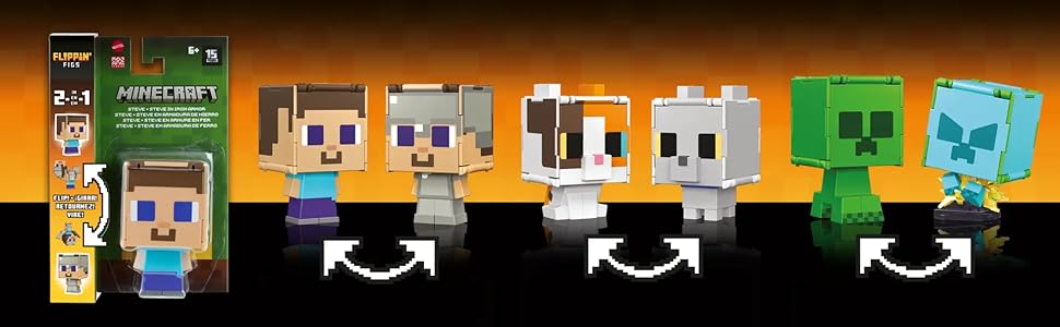 Mattel Minecraft Flippin' Figs | Colección de Figuras 2 en 1