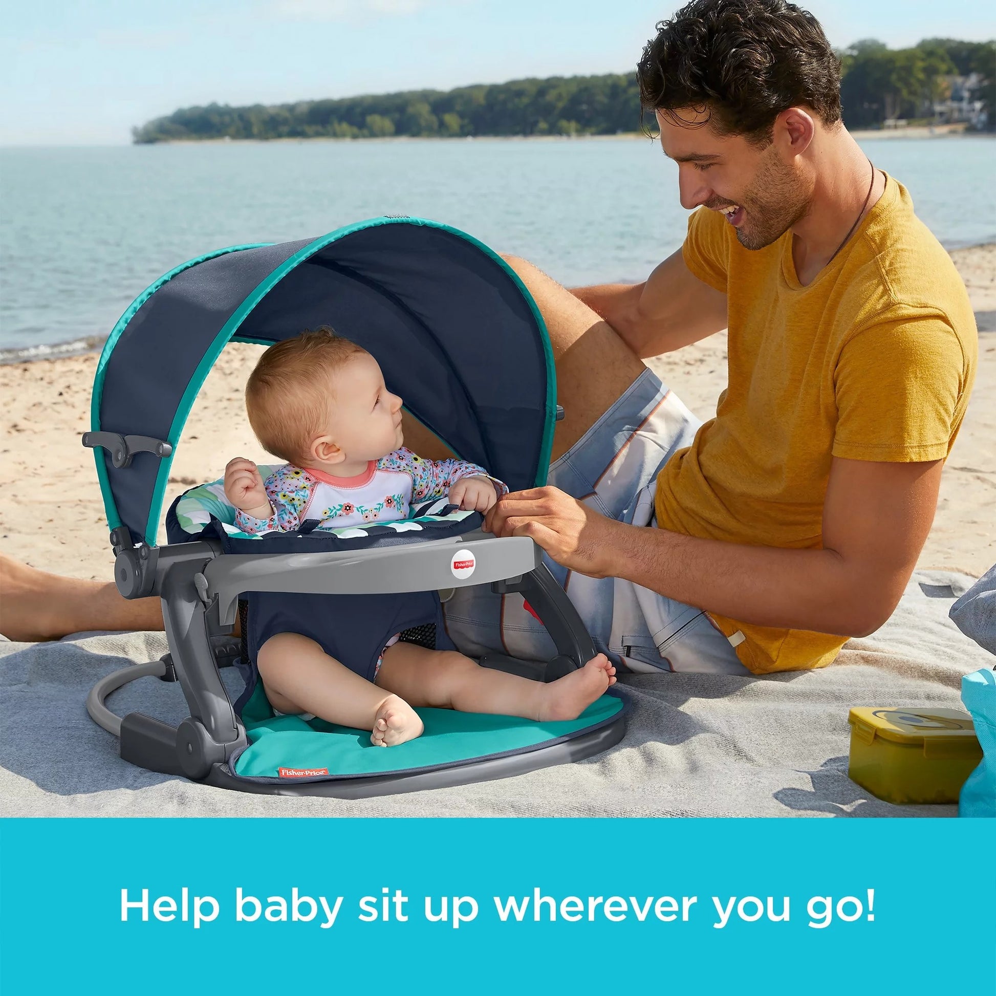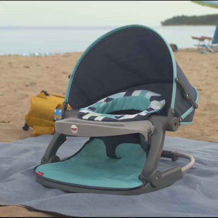 Esta silla a nivel de piso portátil de Fisher-Price es linda, conveniente y muy acogedora para esa personita. Ayuda a apoyar a su bebé mientras lo sienta para interactuar con el mundo que lo rodea (¡Hola, mundo!).