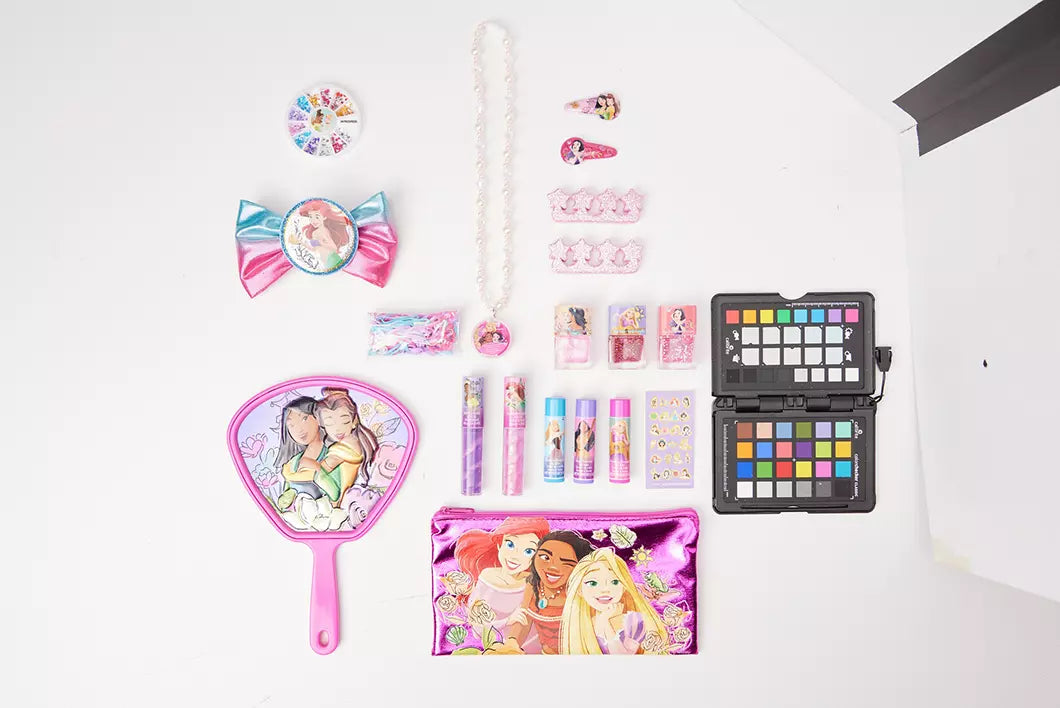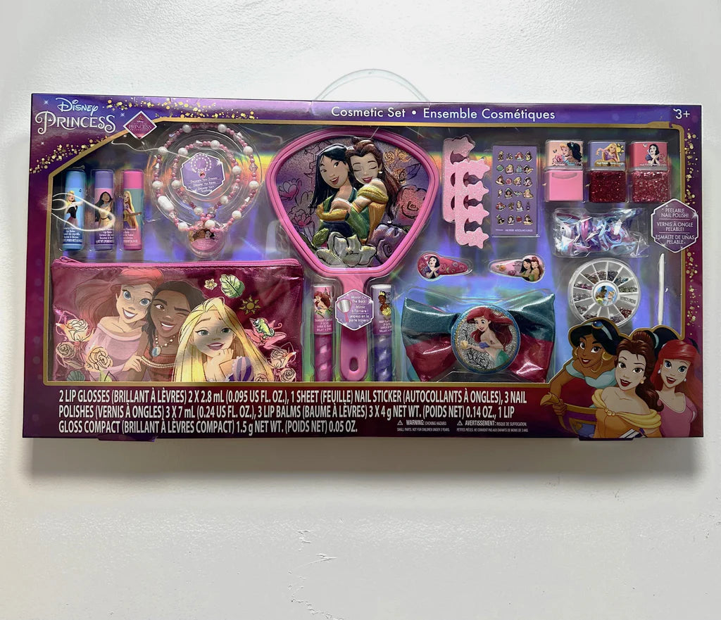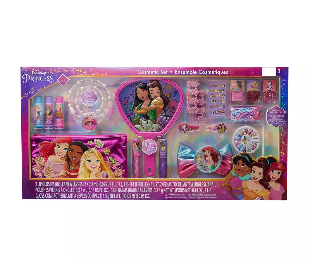 - El mega set de cosméticos Disney Princess incluye una amplia gama de artículos de belleza para inspirar el juego creativo.
