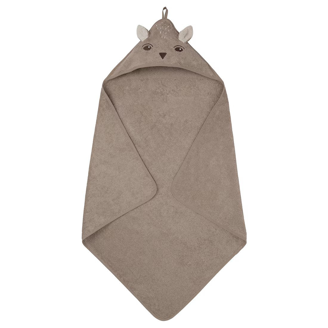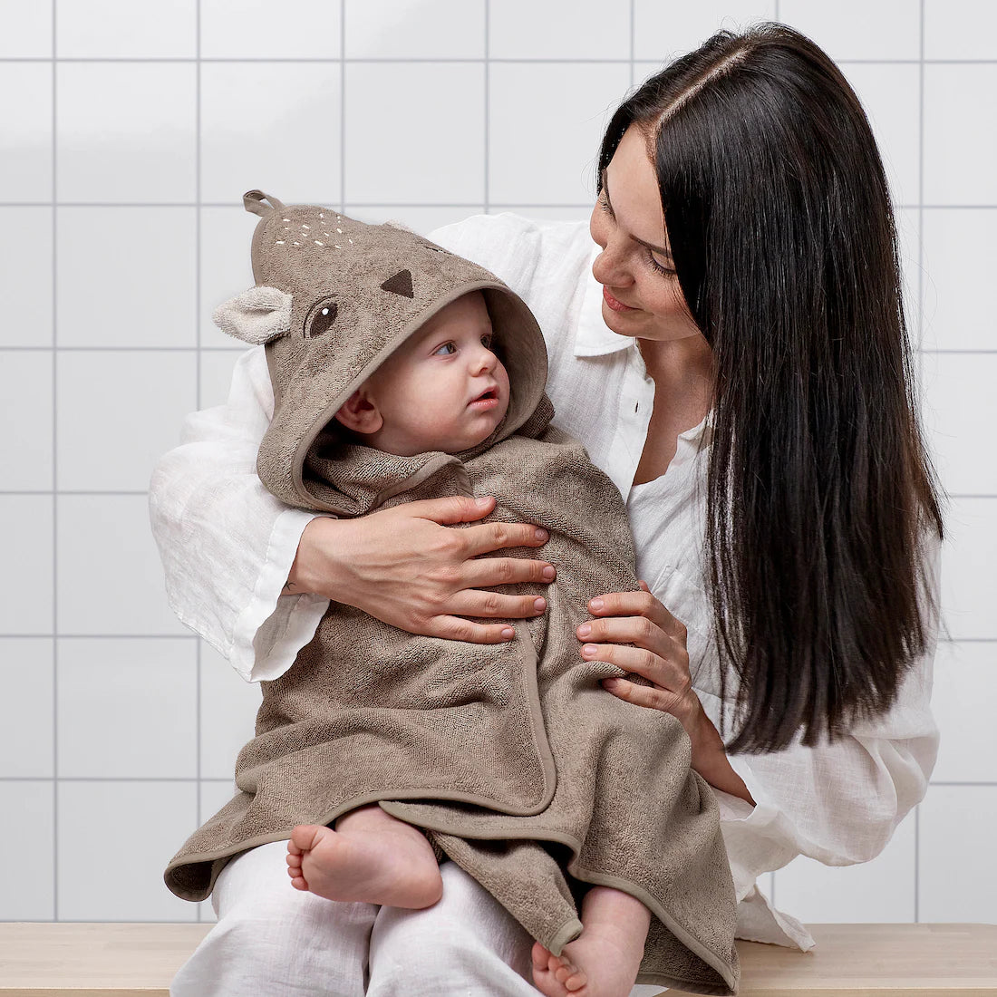 Después del baño, es agradable meterse en una toalla suave con capucha. Aquí descansa tu bebé, acurrucado de pies a cabeza por un amable ciervo hecho de algodón.