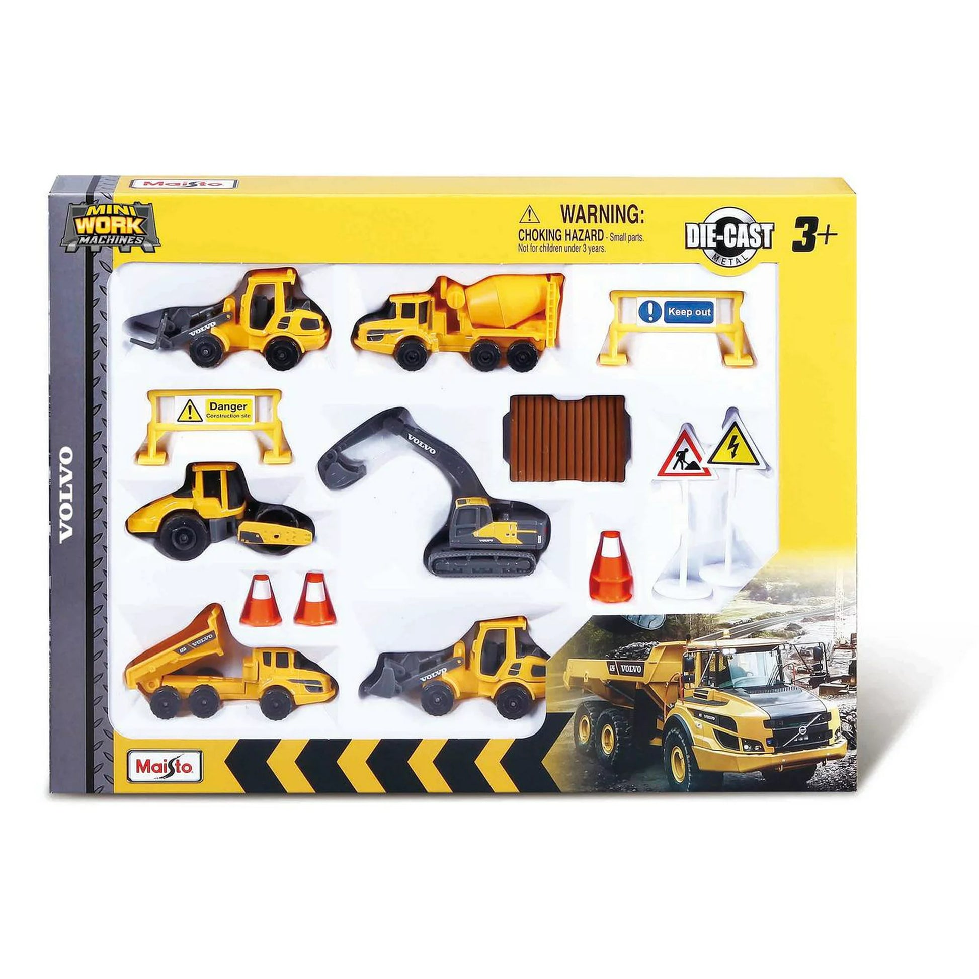 Vehículos de Construcción Volvo | Maisto | Paquete de 6 vehículos con Accesorios de Obra de Construcción
